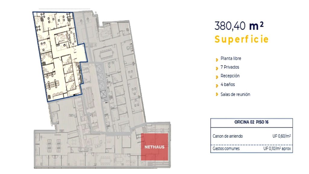 Edificio ubicado en sector Nueva Las Condes, se destaca por su conectividad con distintos ejes de la ciudad de Santiago como Alonso de Córdova y Manquehue.