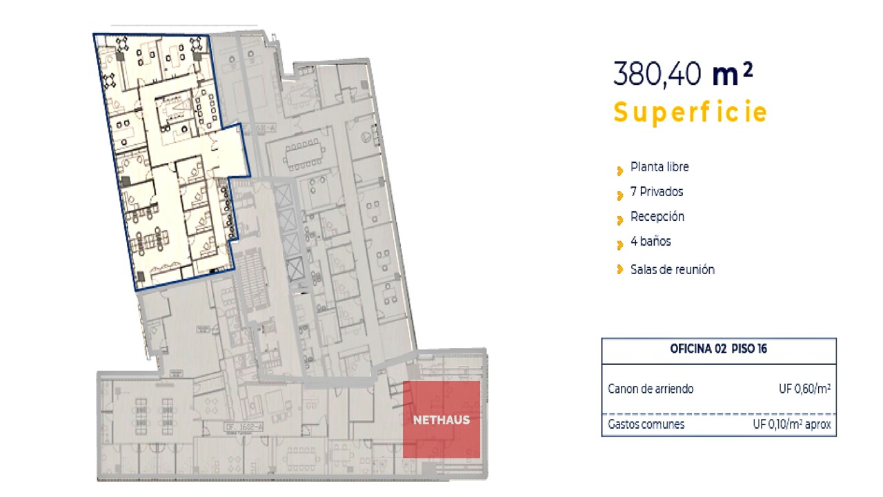 • UF/m2/mes: 0,60/m2.