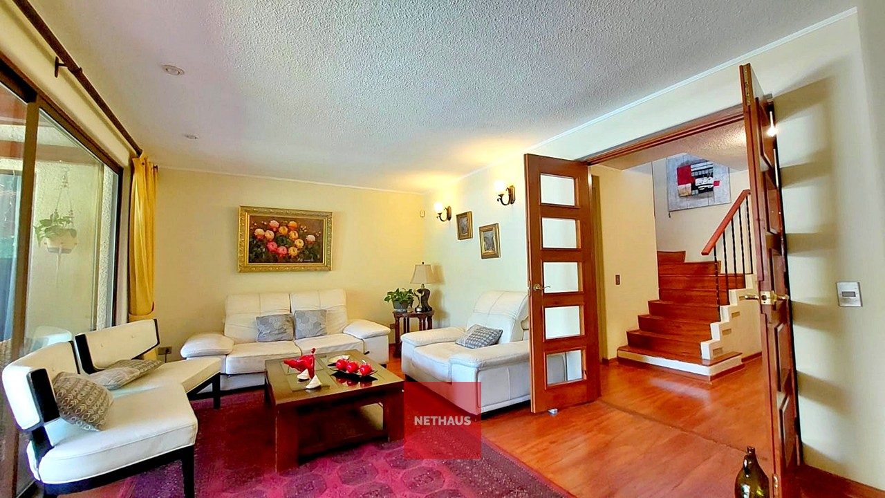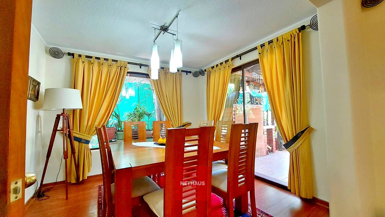 Esta encantadora casa, ubicada en un exclusivo pasaje cerrado en Peñalolén, destaca por su amplitud, luminosidad y excelente estado de conservación. Ha sido remodelada en el sector de la cocina, incorporando un acogedor comedor diario, y en el dormitorio principal, que cuenta con un amplio espacio con salida directa a la terraza.