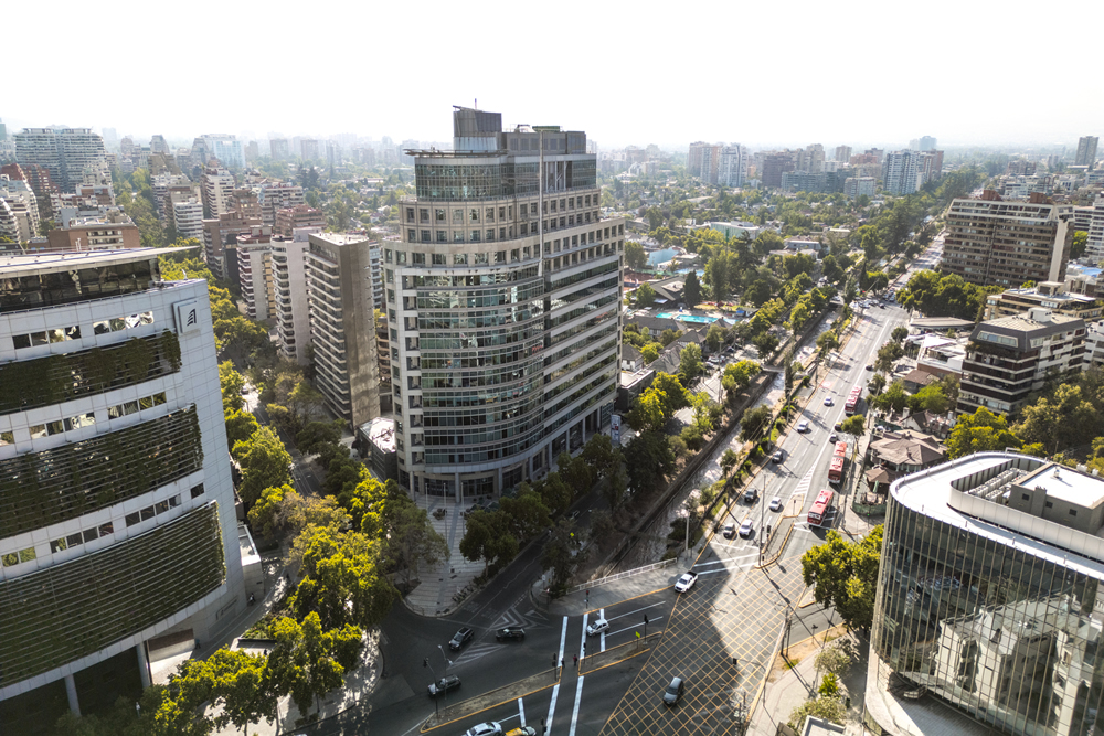 Edificio con clasificación A+, de 16 pisos y 4 niveles subterráneos. Con una superficie de más de 23 mil metros cuadrados en una exclusiva ubicación en pleno barrio residencial y a metros del Metro Tobalaba.