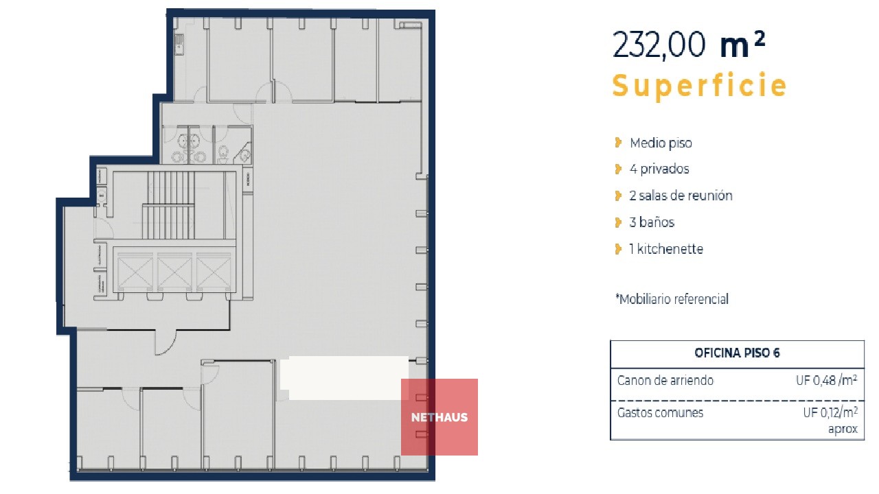 • Oficina UF/m2/mes: 0,48/m2.