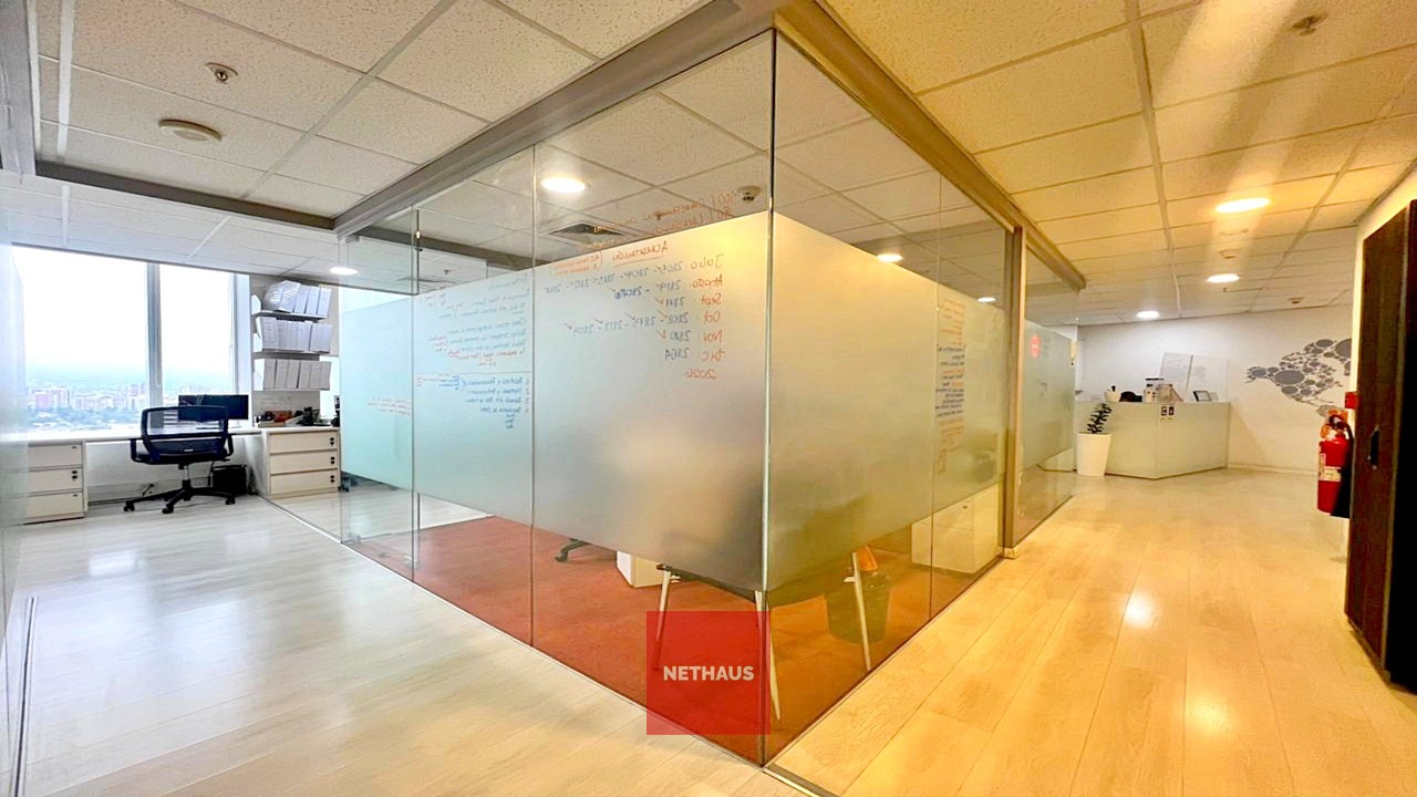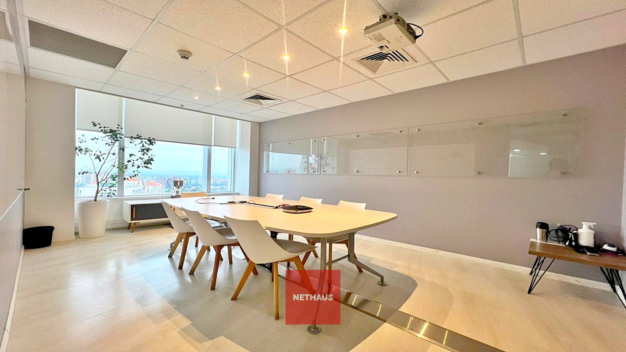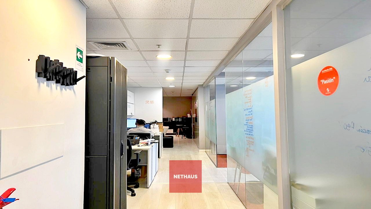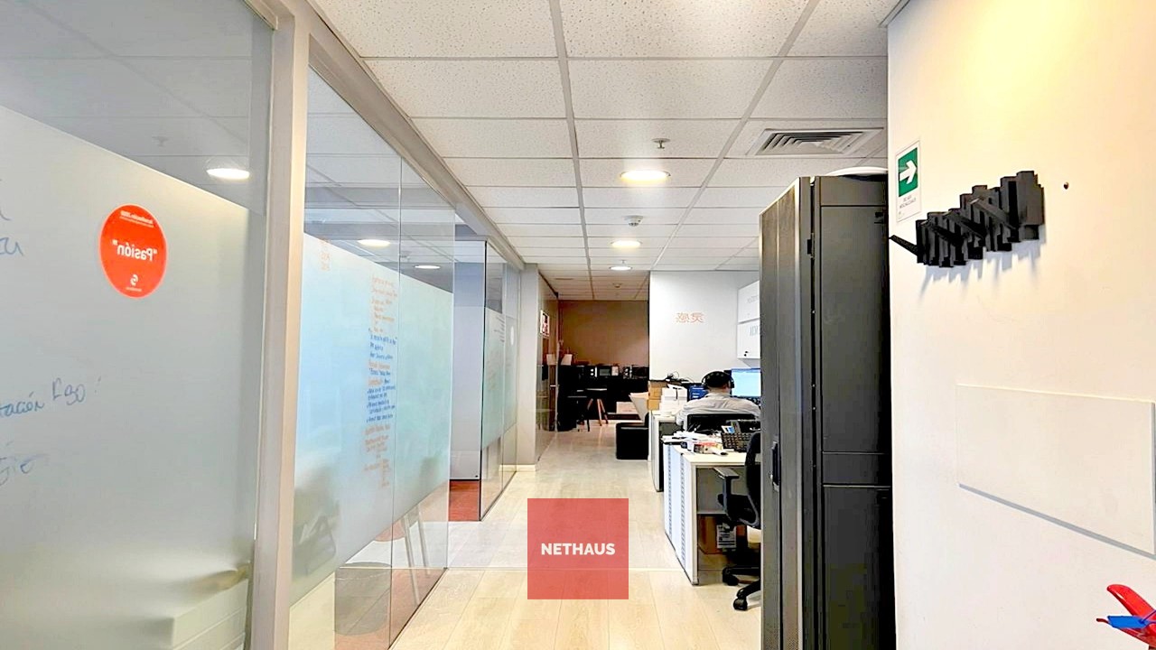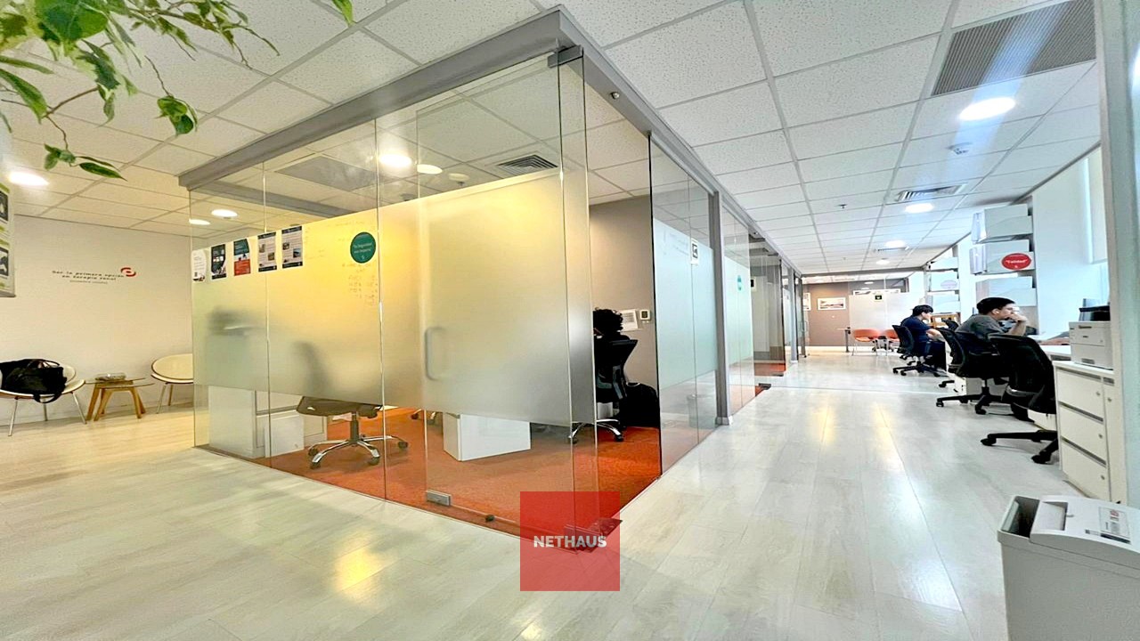 La oficina se entrega habilitada y semi amoblada, con hall de acceso compartido, 3 privados, 2 privados con capacidad para 4 puestos cada uno, sala de reuniones, sala de directorio, coffee corner y 5 baños. Incluye piso de alfombra modular, luminarias halógenas y cortinas roller.