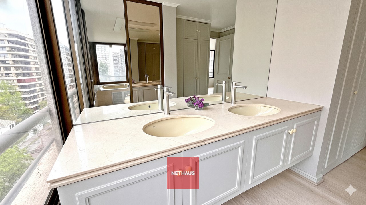 El departamento cuenta con acceso directo desde el ascensor, otorgando máxima comodidad y privacidad. Al ingresar, destaca un amplio hall de entrada, decorado con una elegante puerta estilo francés y piso de mármol, que aporta distinción y carácter al espacio.